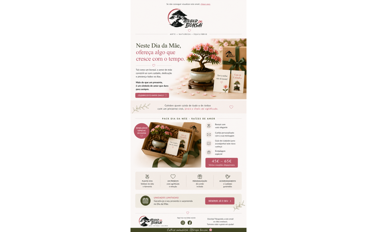 Somos uma empresa familiar que nasceu da paixão pelo mundo do bonsai e pretende crescer com a união e a experiência adquirida ao longo dos anos, fruto de uma constante dedicação à nossa coleção privada.